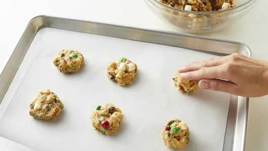 var configuration = {"title":"Kitchen-Sink Christmas Cookies","introduction":"\u003cp\u003eThese Kitchen Sink Christmas Cookies are fun, festive, and packed with flavor and texture! \u0026nbsp;Loaded with M\u0026amp;M\u0027s®, mini marshmallows, pretzels, peanuts, and holiday sprinkles, these cookies are a delightful mix of sweet and salty goodness. Made with Betty Crocker™ Chocolate Chip Cookie Mix, this easy recipe is perfect for holiday baking with the family. Get ready to create a batch of these irresistible Christmas Kitchen Sink Christmas Cookies that will be the star of your cookie tray!\u003c/p\u003e","servingSize":"1 Cookie","image":{"small":{"media":"(min-width: 0px)","src":"https://mojo.generalmills.com/api/public/content/sZfDyXDxS_Wkvvs2FlFd_g_webp_base.webp?v=8d4ef285\u0026t=e724eca7b3c24a8aaa6e089ed9e611fd"},"medium":{"media":"(min-width: 500px)","src":"https://mojo.generalmills.com/api/public/content/sZfDyXDxS_Wkvvs2FlFd_g_webp_base.webp?v=8d4ef285\u0026t=191ddcab8d1c415fa10fa00a14351227"},"large":{"media":"(min-width: 767px)","src":"https://mojo.generalmills.com/api/public/content/sZfDyXDxS_Wkvvs2FlFd_g_webp_base.webp?v=8d4ef285\u0026t=191ddcab8d1c415fa10fa00a14351227"},"alt":"Kitchen-Sink Christmas Cookies"},"contributor":{"label":"By","name":"Edited by Angela Ritchie","profileUrl":"/about-us/angela","displayDate":{"label":"Updated","date":"Nov 4, 2025"}},"ingredientGroups":[{"ingredients":[{"quantity":"1","description":"pouch (17.5 oz) Betty Crocker™ Chocolate Chip Cookie Mix","productLink":"/products/cookiemix/chocolatechip"},{"quantity":"","description":"Butter and egg called for on cookie mix pouch"},{"quantity":"1/2","description":"cup green and red M\u0026M’s® candy-coated milk chocolate candies"},{"quantity":"1/2","description":"cup miniature marshmallows"},{"quantity":"1/3","description":"cup coarsely crushed mini pretzel twists"},{"quantity":"1/4","description":"cup coarsely chopped cocktail peanuts"},{"quantity":"2","description":"tablespoons green, red and white candy sprinkles"}]}],"steps":[{"description":"Heat oven to 375°F. Line large cookie sheets with cooking parchment paper. In large bowl, stir cookie mix, butter and egg until soft dough forms. Stir in remaining ingredients.","stepShotImageUrl":"//mojo.generalmills.com/api/public/content/Pg-lfOKFSKypIsvQtyLFhA_webp_base.webp?v=6ac0be8a\u0026t=51a43a57af4046789e5a7f20567b1195"},{"description":"Drop dough by rounded 2 tablespoonfuls on cookie sheets 2 inches apart. Flatten.","stepShotImageUrl":"//mojo.generalmills.com/api/public/content/cuH9As8XPkam0hV5enyBcw_webp_base.webp?v=ceacbfe3\u0026t=51a43a57af4046789e5a7f20567b1195"},{"description":"Bake 9 to 11 minutes or until light brown. Cool 2 minutes; remove from cookie sheets to cooling rack. Cool completely, about 20 minutes. Store covered in airtight container."}],"tips":[{"title":"","description":"Our Kitchen Sink Christmas cookies combine all the yummiest things you’d want to put in a holiday cookie, which is…basically everything but the kitchen sink!","category":"Rich Snippet","tipShots":[]},{"title":"","description":"Cookie scoops make quick work of dropping cookie dough and help ensure a better end result. This is because they help keep cookie size uniform, so they all bake in the same amount of time!","category":"Techniques","tipShots":[]},{"title":"","description":"For best results, bake one sheet of cookies at a time on the middle oven rack.","category":"Techniques","tipShots":[]},{"title":"","description":"Mini marshmallows can give cookies an irregular shape, but with that shape comes delicious gooey texture! Just remember to use parchment paper, so cleanup is a snap.","category":"Recipe/Ingredient Facts","tipShots":[]},{"title":"","description":"Lining your cookie sheets with cooking parchment paper will prevent any melted marshmallow from sticking to your pan. Clean up will be a breeze!","category":"Method Note","tipShots":[]},{"title":"","description":" If the marshmallows are melting completely, your oven may be running too hot. Ovens tend to run hot over time, so be sure it’s the right temperature by using an inexpensive oven thermometer that can be found in the kitchen gadget section of your grocery or discount store. Another culprit might be using dark cookie sheets. We recommend shiny metal cookie sheets (without any nonstick surface) for cookies.","category":"Method Note","tipShots":[]},{"title":"","description":"For the prettiest cookies, see \u003ca href=\u0022https://www.bettycrocker.com/how-to/tipslibrary/baking-tips/tips-for-perfect-cookies\u0022\u003etips for perfect cookies\u003c/a\u003e.","category":"Method Note","tipShots":[]},{"title":"","description":"Kitchen Tested: 6/2019","category":"Kitchen Tested","tipShots":[]}],"kitchenTips":[{"title":"","description":"Cookie scoops make quick work of dropping cookie dough and help ensure a better end result. This is because they help keep cookie size uniform, so they all bake in the same amount of time!","category":"Techniques","tipShots":[]},{"title":"","description":"For best results, bake one sheet of cookies at a time on the middle oven rack.","category":"Techniques","tipShots":[]},{"title":"","description":"Mini marshmallows can give cookies an irregular shape, but with that shape comes delicious gooey texture! Just remember to use parchment paper, so cleanup is a snap.","category":"Recipe/Ingredient Facts","tipShots":[]},{"title":"","description":"Lining your cookie sheets with cooking parchment paper will prevent any melted marshmallow from sticking to your pan. Clean up will be a breeze!","category":"Method Note","tipShots":[]},{"title":"","description":" If the marshmallows are melting completely, your oven may be running too hot. Ovens tend to run hot over time, so be sure it’s the right temperature by using an inexpensive oven thermometer that can be found in the kitchen gadget section of your grocery or discount store. Another culprit might be using dark c
