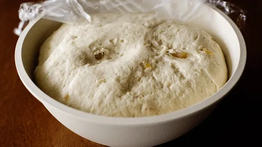 Step2Add flour, salt, nutmeg, cinnamon and 1/2 cup ginger. With dough hook attachment, knead until dough no longer sticks to side of bowl and is elastic, about 5 minutes. Grease another large bowl with shortening or cooking spray. Place dough in bowl, turning dough to grease all sides. Cover loosely with plastic wrap; let rise in warm place about 1 hour 30 minutes or until dough has doubled in size.