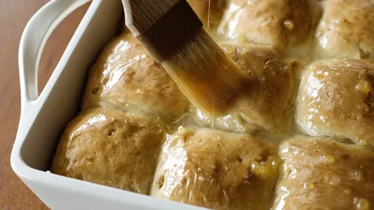 Step5In small saucepan, mix glaze ingredients. Cook over medium heat about 5 minutes, stirring occasionally, until sugar is dissolved and glaze is thick. Brush glaze over warm buns. Cool about 30 minutes.