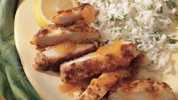 Bisquick Heart Smart® recipe! Add zip to crispy baked chicken with a lemon and apricot sauce.