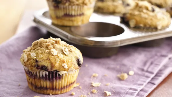 Step3In medium bowl, mix 1/3 cup brown sugar, the milk, oil, lemon peel and egg. Stir in remaining crushed cereal, the flour, baking powder and salt just until moistened. Gently stir in blueberries. Divide batter evenly among muffin cups; sprinkle with topping.