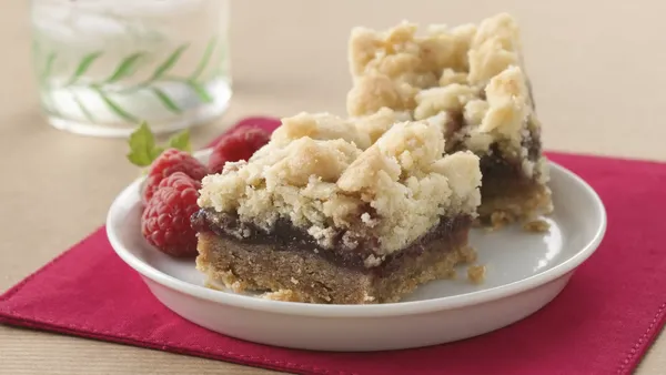 Bright and lemony, this cookie bar topped with sweet raspberries will go fast at your next potluck.
