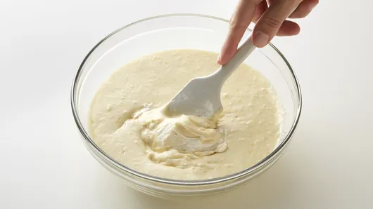 In medium bowl, mix all Pancake ingredients except ricotta with whisk until blended. Stir in ricotta; pour batter into pan, and spread evenly.