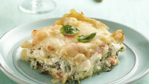 To freeze: Line 13x9-inch (3-quart) glass baking dish with foil, making sure foil is as smooth as possible, as wrinkled foil may get stuck in sauce during freezing process. Leave enough overhang to be able to lift assembled lasagna out of dish. Spray foil with cooking spray. Cover and refrigerate sauce and spinach mixture 30 to 40 minutes before making cheese filling and assembling lasagna. Stir 2 1/4 cups cream sauce into spinach mixture. Assemble lasagna in dish as directed; cover tightly with another layer of foil. Freeze unbaked lasagna about 8 hours or until completely frozen. Transfer frozen lasagna to labeled 2-gallon resealable freezer plastic bag. Remove air; seal and freeze up to three months. To bake: Remove foil, and transfer to 13x9-inch (3-quart) glass baking dish sprayed with cooking spray. Cover and thaw in refrigerator until completely thawed, at least 48 hours. Heat oven to 400°F. Cover with foil and bake 20 minutes; remove foil. Bake 25 to 30 minutes or until heated through (165°F in center), bubbly and lightly browned. Let stand 15 minutes before cutting.