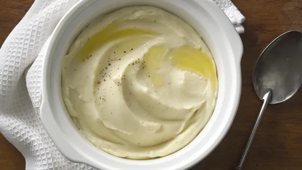 Chive-and-onion cream cheese and sour cream give a baked potato flavor to mashed "spuds."