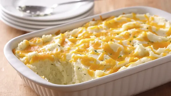 Step1Spray 13x9-inch pan with cooking spray; set aside. In 4-quart Dutch oven, place potatoes; add enough water just to cover potatoes. Cover and heat to boiling; reduce heat. Simmer covered 20 to 25 minutes or until potatoes are tender; drain. Shake potatoes in Dutch oven over low heat to dry.