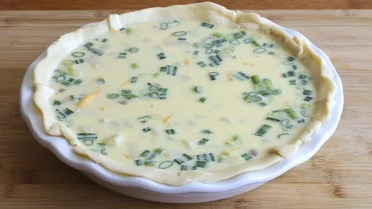 Step3Pour the egg mixture into the pie pan. Bake for 35-40 minutes or until the quiche is firm enough to lay the bacon on. Remove the pie and increase the temperature to 450°F.