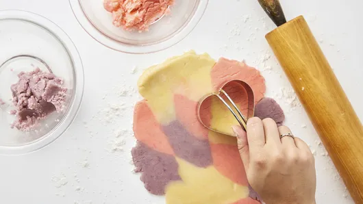 var configuration = {"title":"Marbled Heart Sugar Cookie Cutouts","introduction":"Bake some Valentine\u0027s Day memories with swirly, sweet sugar cookies. Delicious, easy to make and beautiful in presentation, these marbled heart cookies really can\u0027t be beat. Try whipping up a batch and dividing them into gift bags for family and friends—they\u0027ll love that these marbled heart-shaped cookies were baked from the heart!","servingSize":"1 Cookie","image":{"small":{"media":"(min-width: 0px)","src":"https://mojo.generalmills.com/api/public/content/l45-bCSfWEOTr5YIE2A5SA_webp_base.webp?v=8402bc3f\u0026t=e724eca7b3c24a8aaa6e089ed9e611fd"},"medium":{"media":"(min-width: 500px)","src":"https://mojo.generalmills.com/api/public/content/l45-bCSfWEOTr5YIE2A5SA_webp_base.webp?v=8402bc3f\u0026t=191ddcab8d1c415fa10fa00a14351227"},"large":{"media":"(min-width: 767px)","src":"https://mojo.generalmills.com/api/public/content/l45-bCSfWEOTr5YIE2A5SA_webp_base.webp?v=8402bc3f\u0026t=191ddcab8d1c415fa10fa00a14351227"},"alt":"Marbled Heart Sugar Cookie Cutouts"},"contributor":{"label":"By","name":"Betty Crocker Kitchens","profileUrl":"/about-us","displayDate":{"label":"Updated","date":"Aug 10, 2023"}},"ingredientGroups":[{"ingredients":[{"quantity":"1","description":"pouch (17.5 oz) Betty Crocker™ Sugar Cookie Mix","productLink":"/products/cookiemix/sugar"},{"quantity":"","description":"Flour, butter and egg called for on cookie mix pouch for cutout cookies"},{"quantity":"","description":"Betty Crocker™ Pink and Purple Gel Food Colors"},{"quantity":"2","description":"tablespoons coarse white sparking sugar"}]}],"steps":[{"description":"Heat oven to 375°F. ","stepShotImageUrl":"//mojo.generalmills.com/api/public/content/a00AKzwwOkeHeK6tJC_1dQ_webp_base.webp?v=32bbb06e\u0026t=51a43a57af4046789e5a7f20567b1195"},{"description":"In large bowl, mix cookie mix, flour, butter and egg with spoon until soft dough forms. Divide dough into 3 pieces. Place 2 pieces of dough into 2 small bowls. Tint 1 bowl pink and 1 bowl purple by stirring in each food color.","stepShotImageUrl":"//mojo.generalmills.com/api/public/content/-umMp4OuMki1J47fRCGmVQ_webp_base.webp?v=905031a0\u0026t=51a43a57af4046789e5a7f20567b1195"},{"description":"On floured surface, drop tablespoons of each dough in random pattern to make large rectangle. Dough pieces should be just touching together. Push dough rectangle toward center on all sides to make 6x5-inch rectangle. Roll dough 1/4 inch thick to create marbled pattern. Cut with 3-inch heart-shaped cookie cutter; place cutouts 2 inches apart on ungreased cookie sheets. Sprinkle with sugar. Press any leftover scraps together, and reroll on floured surface to make more cookies. ","stepShotImageUrl":"//mojo.generalmills.com/api/public/content/ryCyTKTr4UeZTDOTY2HG0A_webp_base.webp?v=551eb34f\u0026t=51a43a57af4046789e5a7f20567b1195"},{"description":"Bake 7 to 9 minutes or until edges are light golden brown. Cool 2 minutes; remove from cookie sheets to cooling rack. Cool completely, about 15 minutes."}],"tips":[{"title":"","description":"To help transfer your cutout cookie shapes onto the cookie sheet, lightly press the back of the cookie spatula into some flour before sliding it under the cookie dough.","category":"Techniques","tipShots":[]},{"title":"","description":"If you don\u0027t have sparkling sugar on hand, swap in granulated sugar to add extra sparkle to your marble heart cookies.","category":"Substitution","tipShots":[]},{"title":"","description":"Wear food-safe plastic gloves to easily mix food coloring into the cookie dough without staining your hands. Single-use plastic gloves can be found at most large retailers.","category":"No Title","tipShots":[]},{"title":"","description":"The more the cookie dough is rolled, the more marbled your heart cookies will be.","category":"No Title","tipShots":[]},{"title":"","description":"Kitchen Tested - 1/2017.","category":"Kitchen Tested","tipShots":[]}],"kitchenTips":[{"title":"","description":"To help transfer your cutout cookie shapes onto the cookie sheet, lightly press the back of the cookie spatula into some flour before sliding it under the cookie dough.","category":"Techniques","tipShots":[]},{"title":"","description":"If you don\u0027t have sparkling sugar on hand, swap in granulated sugar to add extra sparkle to your marble heart cookies.","category":"Substitution","tipShots":[]},{"title":"","description":"Wear food-safe plastic gloves to easily mix food coloring into the cookie dough without staining your hands. Single-use plastic gloves can be found at most large retailers.","category":"No Title","tipShots":[]},{"title":"","description":"The more the cookie dough is rolled, the more marbled your heart cookies will be.","category":"No Title","tipShots":[]}],"additionalContent":[],"faq":[],"tipCategories":[{"categoryName":"Kitchen Tested","heading":"More About This Recipe","cssClass":"recipePartStory","expandOnInit":false,"expandText":"More +","collapseText":"Less -","expandEventName":"","collapseEventName":"","image":"","tips":[{"title":"","description":"Kitchen Tested - 1/2017.","category":"Kitchen Tested","tipShots":[]}],"isExpandable":false}],"nutritionInfo":{"configuration":{"showAsTable":false,"noNutritionInformationAvailableMessage":"Nutrition Facts are not available for this recipe","poweredByText":"\u003cp\u003eNutrition information for this recipe is estimated using a leading nutrition calculation application, but is an estimate only. Actual nutrition values will vary based on the exact ingredients or brands you may use.\u003c/p\u003e\n\u003ca href=\u0022http://developer.edamam.com\u0022\u003ePowered By \u003cimg src=\u0022-/media/05422024943D4056883B09BBC2576F20.ashx\u0022 alt=\u0022Edamam\u0022 /\u003e\u003c/a\u003e","nutritionChartTitle":"Nutrition Facts","nutritionInformationLabel":"Nutrition","servingSizeText":"Serving Size:","dailyValuesDisclaimer":"*Percent Daily Values are based on a 2,000 calorie diet.","percentDa