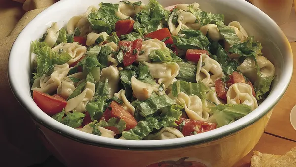 Italian colors and flavors top the bill in this pretty pasta salad, with convenient prepared tortellini and frozen broccoli florets.