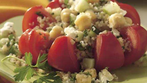Step3Stir broccoli and remaining ingredients into bulgur. Serve immediately, or cover and refrigerate up to 4 hours before serving.