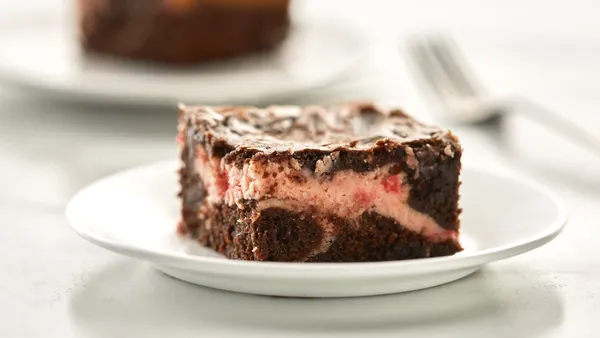Step1Heat oven to 350°F. Grease rectangular pan, 13x9x2 inches. In 1-quart saucepan, melt chocolate and butter over low heat, stirring frequently, until smooth; remove from heat. Cool 5 minutes. Meanwhile, in medium bowl, beat all Cherry Cream Cheese Filling ingredients with spoon until smooth, set aside.
