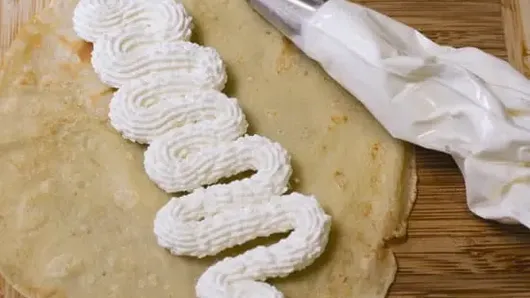 Step5To serve, place Meyer Lemon Chantilly Cream in decorating bag. Place 1 crepe at a time on work surface. Pipe a line of cream down center of crepe. Fold 1 side over cream; fold other side over top. Plate crepes on serving plates; top with raspberries. Store any remaining chantilly cream in refrigerator.