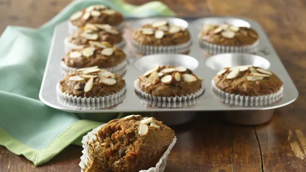 Step4Meanwhile, in small bowl, mix glaze ingredients until smooth and thin enough to drizzle. Immediately remove muffins from pan to cooling rack. Drizzle glaze over warm muffins. Serve warm if desired.
