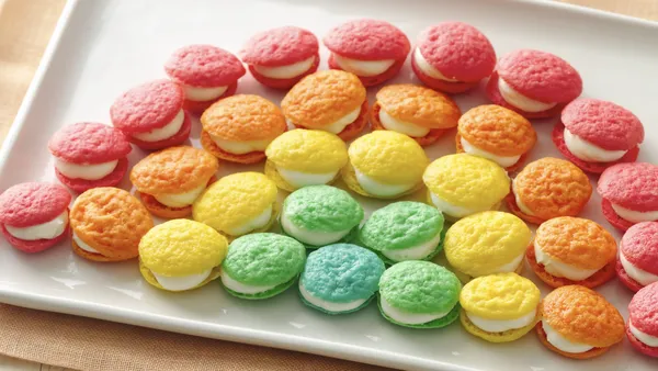 For each whoopie pie, spread about 1 1/4 teaspoons filling on bottom of 1 cookie; place second cookie, bottom side down, on filling. Refrigerate 30 minutes before serving. Store loosely covered in refrigerator with waxed paper between layers.