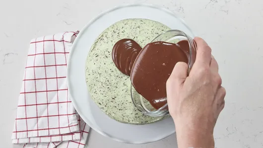 To make this mint chocolate cake ahead, you can fill and frost the cake with the frosting and freeze in an airtight container for up to 1 month. Thaw the cake completely, and top with the ganache after cake has thawed. Cake layers can be made ahead, wrapped tightly in plastic wrap, and frozen up to 1 month in advance. Thaw the cake layers before frosting.