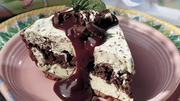 Step3Let stand at room temperature about 10 minutes before cutting. Serve with fudge topping; sprinkle with remaining cookies. Cover and freeze any remaining pie.