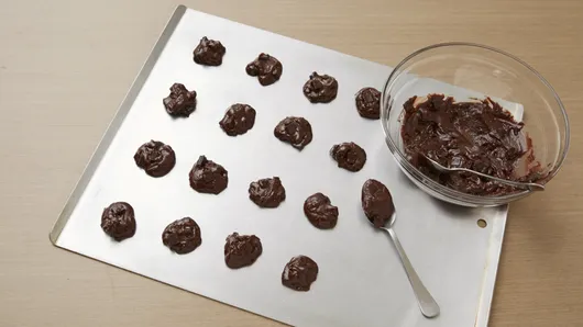 Step2Drop dough by rounded tablespoonfuls 2 inches apart on ungreased cookie sheets. Using thumb or handle of wooden spoon, make indentation in center of each cookie.