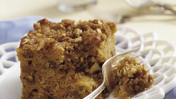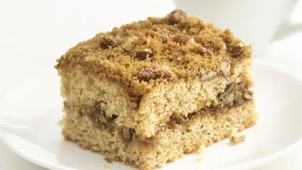 Step4Spoon half of the batter into pan; spread evenly. Sprinkle with half of the streusel. Top with remaining batter and streusel.