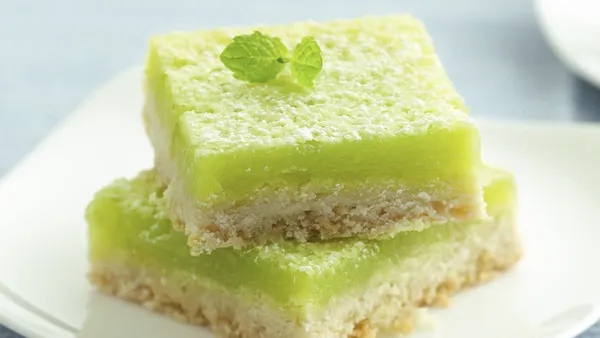 Step6In small bowl, beat whipping cream and powdered sugar on high speed until soft peaks form. Garnish each serving with whipped cream, mint leaf and shredded lime peel. Store loosely covered.