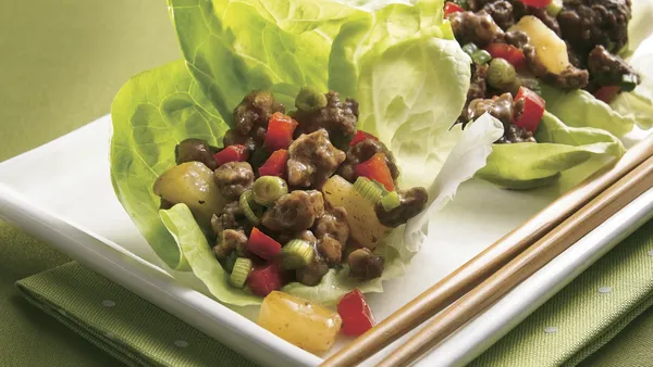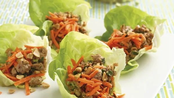 Step3To serve, spoon turkey mixture onto each lettuce leaf; wrap around filling. Serve warm.