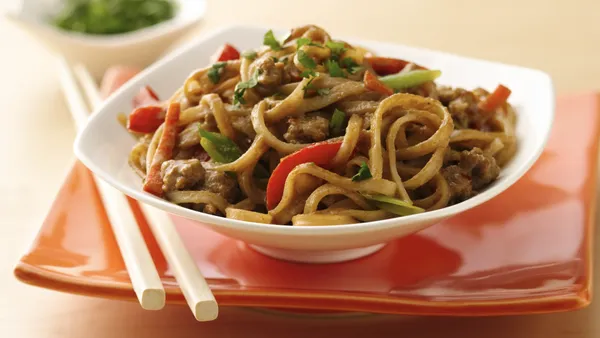 - 10 oz uncooked wide rice noodles, cooked as directed on package