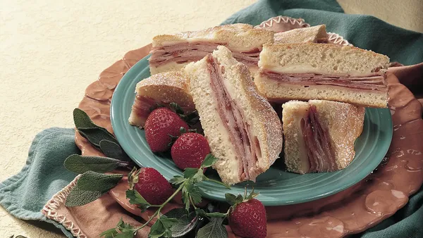 Bisquick Heart Smart® recipe! A California sandwich from the 1900s consisting of ham, turkey and fruit preserves gets a baked remake using special ingredients.