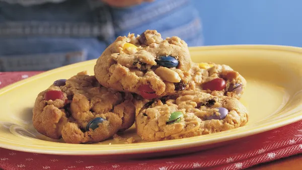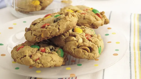 - 1/2 cup candy-coated chocolate candies or chocolate chips