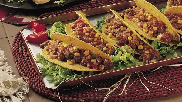 Step3Spoon beef mixture into heated taco shells. Serve with desired toppings.