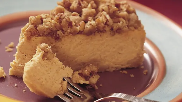 Run a metal spatula along the side of the pan to loosen the cheesecake again. Remove the side of the pan; leave the cheesecake on the pan bottom to serve.