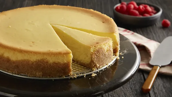 var configuration = {"title":"New York Cheesecake","introduction":"\u003cp\u003eIf you love cheesecake (and who doesn’t?), this is a recipe to try. This New York Cheesecake recipe features a buttery, melt-in-your-mouth crust and a rich, smooth filling made with cream cheese and a hint of citrus. Baked to perfection and topped with whipped cream and toasted almonds, this cheesecake is the ultimate dessert for any celebration. Learn how to make this iconic treat with our easy-to-follow recipe!\u0026nbsp;\u003c/p\u003e","servingSize":"1 Serving","image":{"small":{"media":"(min-width: 0px)","src":"https://mojo.generalmills.com/api/public/content/2u2CWUj3S1eMsDujY95ptg_webp_base.webp?v=8f334ff6\u0026t=e724eca7b3c24a8aaa6e089ed9e611fd"},"medium":{"media":"(min-width: 500px)","src":"https://mojo.generalmills.com/api/public/content/2u2CWUj3S1eMsDujY95ptg_webp_base.webp?v=8f334ff6\u0026t=191ddcab8d1c415fa10fa00a14351227"},"large":{"media":"(min-width: 767px)","src":"https://mojo.generalmills.com/api/public/content/2u2CWUj3S1eMsDujY95ptg_webp_base.webp?v=8f334ff6\u0026t=191ddcab8d1c415fa10fa00a14351227"},"alt":"New York Cheesecake"},"contributor":{"label":"By","name":"Betty Crocker Kitchens","profileUrl":"/about-us","displayDate":{"label":"Updated","date":"Oct 30, 2025"}},"ingredientGroups":[{"name":"Crust","ingredients":[{"quantity":"1","description":"cup Gold Medal™ All Purpose Flour"},{"quantity":"1/2","description":"cup butter, softened"},{"quantity":"1/4","description":"cup sugar"},{"quantity":"1","description":"egg yolk"}]},{"name":"Filling","ingredients":[{"quantity":"5","description":"packages (8 oz each) cream cheese, softened"},{"quantity":"1 3/4","description":"cups sugar"},{"quantity":"3","description":"tablespoons Gold Medal™ All Purpose Flour"},{"quantity":"1","description":"tablespoon grated orange peel, if desired"},{"quantity":"1","description":"tablespoon grated lemon peel, if desired"},{"quantity":"1/4","description":"teaspoon salt"},{"quantity":"5","description":"eggs"},{"quantity":"2","description":"egg yolks"},{"quantity":"1/4","description":"cup whipping cream"}]},{"name":"Topping","ingredients":[{"quantity":"3/4","description":"cup whipping cream"},{"quantity":"1/3","description":"cup sliced almonds, toasted, if desired"}]}],"steps":[{"description":"\u003cp\u003eHeat oven to 400°F. Lightly grease a 9-inch springform pan with shortening; remove bottom.\u0026nbsp;\u003c/p\u003e"},{"description":"\u003cp\u003eIn a medium bowl, mix all crust ingredients with a fork until dough forms.\u0026nbsp;\u003c/p\u003e","stepShotImageUrl":"//mojo.generalmills.com/api/public/content/Akad4JV7Skmf96wxxNCZ7A_webp_base.webp?v=d5b89237\u0026t=51a43a57af4046789e5a7f20567b1195"},{"description":"\u003cp\u003eGather dough into a ball. Press one-third of the dough evenly on the bottom of the pan.\u0026nbsp;\u003c/p\u003e","stepShotImageUrl":"//mojo.generalmills.com/api/public/content/sdUvhueeRhu4i3M0K1L5wg_webp_base.webp?v=489fddfd\u0026t=51a43a57af4046789e5a7f20567b1195"},{"description":"\u003cp\u003ePlace bottom of the pan on a cookie sheet. Bake 8 to 10 minutes or until light golden brown; cool completely.\u0026nbsp;\u003c/p\u003e"},{"description":"\u003cp\u003eAssemble bottom and side of pan, secure side. Press remaining dough 2 inches up side of pan. Increase oven temperature to 450°F.\u0026nbsp;\u003c/p\u003e"},{"description":"\u003cp\u003eIn a large bowl, beat cream cheese, sugar, flour, orange peel, lemon peel, and salt with electric mixer on medium speed about 1 minute or until smooth. Beat in eggs, 2 egg yolks and 1/4 cup whipping cream, beating on low speed until well blended. Pour into the pan. Bake 15 minutes.\u003c/p\u003e","stepShotImageUrl":"//mojo.generalmills.com/api/public/content/tJ-wxy99T4iPl26RHHZucw_webp_base.webp?v=ef7b8c29\u0026t=51a43a57af4046789e5a7f20567b1195"},{"description":"\u003cp\u003eReduce oven temperature to 200°F. Bake 1 hour longer. Cheesecake may not appear to be done, but if a small area in the center seems soft, it will become firm as the cheesecake cools. (Do not insert a knife to test for doneness because the hole could cause the cheesecake to crack.) Turn off the oven; leave the cheesecake in the oven for 30 minutes longer. Remove from the oven and cool in the pan on a cooling rack away from drafts for 30 minutes.\u003c/p\u003e"},{"description":"\u003cp\u003eWithout releasing or removing side of pan, run a metal spatula carefully along the side of the pan to loosen cheesecake. Refrigerate uncovered about 3 hours or until chilled; cover and continue refrigerating for at least 9 hours but no longer than 48 hours.\u003c/p\u003e"},{"description":"\u003cp\u003eRun a metal spatula along the side of the pan to loosen the cheesecake again. Remove the side of the pan; leave the cheesecake on the pan bottom to serve.\u0026nbsp;\u003c/p\u003e","stepShotImageUrl":"//mojo.generalmills.com/api/public/content/pcOeKO5pSBSgbHY-QCGGxA_webp_base.webp?v=e47bada1\u0026t=51a43a57af4046789e5a7f20567b1195"},{"description":"\u003cp\u003eIn a chilled small bowl, beat 3/4 cup whipping cream with electric mixer on high speed until stiff peaks form. Spread whipped cream over top of cheesecake. Decorate with almonds. Store covered in the refrigerator.\u003c/p\u003e","stepShotImageUrl":"//mojo.generalmills.com/api/public/content/vN_Pap0cRMyUtA2XzfkiSg_webp_base.webp?v=7a85d371\u0026t=51a43a57af4046789e5a7f20567b1195"}],"tips":[{"title":"","description":"Creamy and sweet, this New York Cheesecake is the gold standard for all cheesecakes! \u0026nbsp;Learn how to make this iconic treat with our easy-to-follow recipe!\u0026nbsp;","category":"Rich Snippet","tipShots":[]},{"title":"","description":"\u003cp\u003eWrap outside and bottom of pan with foil to prevent leaking during baking.\u003c/p\u003e","category":"Techniques","tipShots":[]},{"title":"Planned-Overs ","description":"\u003cp\u003eRefrigerate extra egg whites in a sealed container for up to 4 days. They make great additions