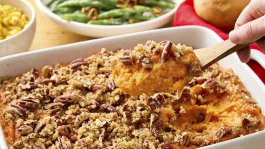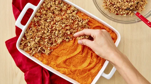 var configuration = {"title":"Old-Fashioned Sweet Potato Soufflé","introduction":"\u003cp\u003eThis decadent holiday side dish puts the marshmallow-topped version to shame! Roasted, mashed sweet potatoes topped with a streusel mixture of chopped pecans, butter, brown sugar, and cinnamon, this sweet and savory casserole might get more oohs and aahs than a perfectly roasted golden-brown turkey.\u003c/p\u003e\n\u003cp\u003eImagine your kitchen filled with the sweet and savory smells of roasted sweet potatoes. This elegant soufflé casserole is fluffier and more decadent than traditional sweet potato casserole while the crispy streusel topping adds a delightful contrast to the creamy mashed sweet potatoes.\u003c/p\u003e\n\u003cp\u003eEasy to prepare and widely appealing, this beautiful bake is bound to leave an impression on your guests. It\u0027s time to add this yummy fall dish to your holiday cooking repertoire!\u003c/p\u003e","servingSize":"About 1 Cup","image":{"small":{"media":"(min-width: 0px)","src":"https://mojo.generalmills.com/api/public/content/ZNaLYeSuSFSzvUoAEe0GKQ_webp_base.webp?v=1c22e94d\u0026t=e724eca7b3c24a8aaa6e089ed9e611fd"},"medium":{"media":"(min-width: 500px)","src":"https://mojo.generalmills.com/api/public/content/ZNaLYeSuSFSzvUoAEe0GKQ_webp_base.webp?v=1c22e94d\u0026t=191ddcab8d1c415fa10fa00a14351227"},"large":{"media":"(min-width: 767px)","src":"https://mojo.generalmills.com/api/public/content/ZNaLYeSuSFSzvUoAEe0GKQ_webp_base.webp?v=1c22e94d\u0026t=191ddcab8d1c415fa10fa00a14351227"},"alt":"Old-Fashioned Sweet Potato Soufflé"},"contributor":{"label":"By","name":"Betty Crocker Kitchens","profileUrl":"/about-us","displayDate":{"label":"Updated","date":"Jul 18, 2024"}},"ingredientGroups":[{"name":"Sweet Potatoes","ingredients":[{"quantity":"6","description":"medium dark-orange sweet potatoes (4 1/2 to 5 lb)"},{"quantity":"1/2","description":"cup heavy whipping cream"},{"quantity":"3","description":"eggs, beaten"},{"quantity":"1","description":"cup granulated sugar"},{"quantity":"1/2","description":"teaspoon salt"}]},{"name":"Topping","ingredients":[{"quantity":"1","description":"cup chopped pecans"},{"quantity":"1","description":"cup brown sugar, packed"},{"quantity":"1/4","description":"cup Gold Medal™ All-Purpose Flour"},{"quantity":"4","description":"tablespoons butter, softened"},{"quantity":"1/2","description":"teaspoon ground cinnamon"},{"quantity":"1/2","description":"teaspoon salt"}]}],"steps":[{"description":"Heat oven to 350°F. Pierce potatoes with fork. Spray 13x9-inch (3-quart) baking dish with cooking spray. Place potatoes in dish and cover with foil; bake 1 hour 25 minutes to 1 hour 40 minutes, or until potatoes are very tender when pierced with a paring knife or fork.","stepShotImageUrl":"//mojo.generalmills.com/api/public/content/OmN2zuO6R7u_kHW0CjBOsw_webp_base.webp?v=98f6cda3\u0026t=51a43a57af4046789e5a7f20567b1195"},{"description":"Let potatoes stand about 10 minutes or until cool enough to handle; slip off skins, and discard. Place cooked potatoes in large bowl. Mash with electric hand mixer at medium speed 1 to 2 minutes, until smooth.","stepShotImageUrl":"//mojo.generalmills.com/api/public/content/KexSpTWZQcCAPOoYe8c6dg_webp_base.webp?v=94efb62f\u0026t=51a43a57af4046789e5a7f20567b1195"},{"description":"Clean the baking dish, and spray with cooking spray. To potatoes, add whipping cream, eggs, granulated sugar and 1/2 teaspoon salt. Beat with electric hand mixer at medium speed 1 to 2 minutes, or until smooth and combined. Spoon into baking dish.","stepShotImageUrl":"//mojo.generalmills.com/api/public/content/LED7kkPER6edEvjG56TguQ_webp_base.webp?v=f49fe9f1\u0026t=51a43a57af4046789e5a7f20567b1195"},{"description":"In small bowl, mix Topping ingredients; sprinkle over potatoes.","stepShotImageUrl":"//mojo.generalmills.com/api/public/content/GhzxNh-GTNemlF4tEJQaOA_webp_base.webp?v=854f0a42\u0026t=51a43a57af4046789e5a7f20567b1195"},{"description":"Bake uncovered 38 to 45 minutes or until hot in center (at least 165°F) and topping is crisp.","stepShotImageUrl":"//mojo.generalmills.com/api/public/content/ov09vJ-QQcaGcYtiqCEvEA_webp_base.webp?v=fe32d5ae\u0026t=51a43a57af4046789e5a7f20567b1195"}],"tips":[{"title":"","description":"Get cozy with a perfect holiday comfort dish, our sweet potato soufflé! Take your fall cooking up a notch with this delicious streusel-topped casserole.","category":"Rich Snippet","tipShots":[]},{"title":"","description":"When baking sweet potatoes in their skin, testing for doneness is key. Insert a paring knife or fork into center or thickest part of the sweet potato. It should both go in and come out without resistance.","category":"Techniques","tipShots":[]},{"title":"","description":"Be sure to purchase orange- or red-fleshed sweet potatoes.","category":"Recipe/Ingredient Facts","tipShots":[]},{"title":"","description":"There\u0027s no need to toast the nuts before baking. They will get toasted in the streusel topping as it bakes.","category":"Recipe/Ingredient Facts","tipShots":[]},{"title":"","description":"Kitchen Tested (by RDC during development): 4/2024","category":"Kitchen Tested","tipShots":[]}],"kitchenTips":[{"title":"","description":"When baking sweet potatoes in their skin, testing for doneness is key. Insert a paring knife or fork into center or thickest part of the sweet potato. It should both go in and come out without resistance.","category":"Techniques","tipShots":[]},{"title":"","description":"Be sure to purchase orange- or red-fleshed sweet potatoes.","category":"Recipe/Ingredient Facts","tipShots":[]},{"title":"","description":"There\u0027s no need to toast the nuts before baking. They will get toasted in the streusel topping as it bakes.","category":"Recipe/Ingredient Facts","tipShots":[]}],"additionalContent":[{"title":"How to Make Sweet Potato Soufflé","description":"\u003cp\u003eA fluffy roasted sweet potato base and a sweetly spiced, nutty topping team up in this sweet potato soufflé for a 