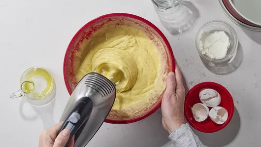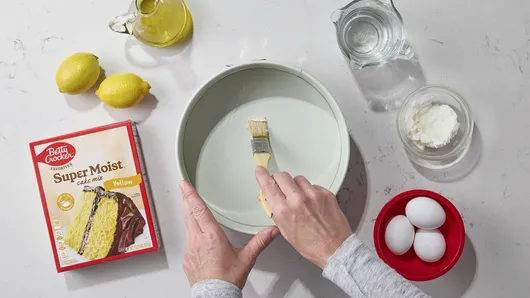 Using Betty Crocker™ Super Moist™ Yellow Cake Mix as a jumpstart in this ultra-easy olive oil cake recipe means the batter comes together in just minutes. The specific steps and ingredients are laid out in the recipe below, but here is the basic method.