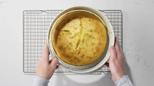 Step3Bake 40 to 45 minutes or until toothpick inserted deeply into center comes out clean. Cool in pan 20 minutes; remove from pan to cooling rack. Cool completely, about 1 hour.
