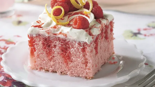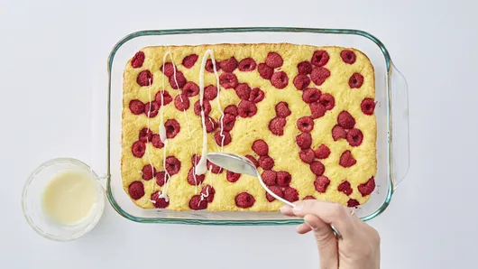 Bright-colored and beautiful, this lemony cake is proof that an eye-catching dessert doesn’t have to be complicated. Starting with a box of Betty Crocker™ Super Moist™ yellow cake mix and flavored with zingy lemon juice, this vibrant treat only takes 8 ingredients and 20 minutes of prep time–talk about easy! Right before baking, the tender citrusy cake is studded with juicy raspberries resulting in a dreamy spring treat that’s worthy of being served at all of your spring parties. Add a drizzle of sweet vanilla frosting for a dazzling final touch!