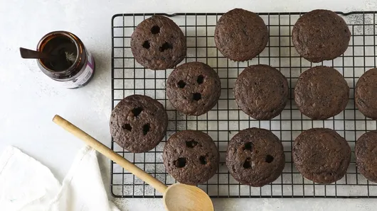 Step3Bake 15 to 18 minutes or until tops of cupcakes spring back when gently touched. Cool in pans 3 minutes. Remove from pans; use end of wooden spoon to poke 3 holes into each hot cupcake.
