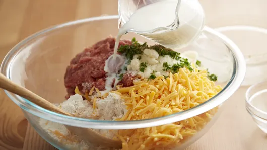 Milk: Adds moisture to the sausage mixture to help form the perfect balls. While we used 2% milk during testing, any variety will work. We find the dairy notes in milk enhances the cheesy flavor.