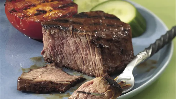 Step3To serve, bring any remaining marinade to a boil in small saucepan. To serve, slice beef thinly; serve with marinade.