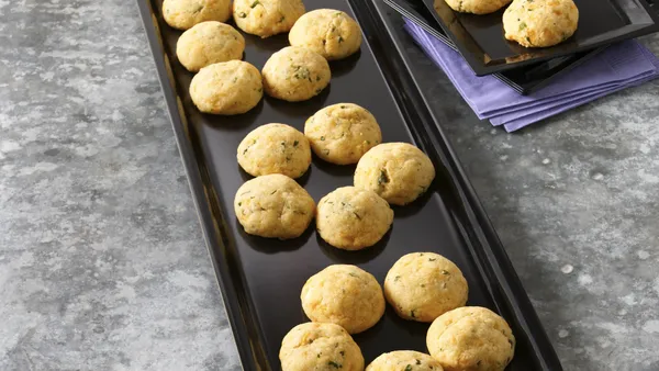 Step4Bake about 15 minutes or until puffed and golden brown. Serve warm with marinara sauce for dipping.