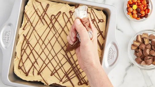 var configuration = {"title":"Peanut Butter Candy-Topped Brownies","introduction":"You can’t beat the classic flavor combo of chocolate and peanut butter, and these Reese’s Pieces brownies deliver in a huge way. Chocolaty brownies with peanuts are topped with a creamy peanut butter frosting, peanut butter-chocolate candies and a chocolate drizzle for a chocolate-peanut butter lover’s dream come true. Bake up a batch of these decadent Reese’s Pieces peanut butter brownies, and watch them disappear before your very eyes!","servingSize":"1 Brownie","image":{"small":{"media":"(min-width: 0px)","src":"https://mojo.generalmills.com/api/public/content/6cGgOAmCN0qErXmXPDIVYg_webp_base.webp?v=dc1cb1ba\u0026t=e724eca7b3c24a8aaa6e089ed9e611fd"},"medium":{"media":"(min-width: 500px)","src":"https://mojo.generalmills.com/api/public/content/6cGgOAmCN0qErXmXPDIVYg_webp_base.webp?v=dc1cb1ba\u0026t=191ddcab8d1c415fa10fa00a14351227"},"large":{"media":"(min-width: 767px)","src":"https://mojo.generalmills.com/api/public/content/6cGgOAmCN0qErXmXPDIVYg_webp_base.webp?v=dc1cb1ba\u0026t=191ddcab8d1c415fa10fa00a14351227"},"alt":"Peanut Butter Candy-Topped Brownies"},"contributor":{"label":"By","name":"Betty Crocker Kitchens","profileUrl":"/about-us","displayDate":{"label":"Updated","date":"Oct 14, 2022"}},"ingredientGroups":[{"ingredients":[{"quantity":"1","description":"box (17.8 oz) Betty Crocker™ Delights Supreme Triple Chunk Brownie Mix","productLink":"/products/betty-crocker-brownies-and-dessert-bars/triple-chunk-brownie"},{"quantity":"","description":"Water, vegetable oil and egg called for on brownie mix box"},{"quantity":"1/2","description":"cup chopped cocktail peanuts"},{"quantity":"1","description":"cup from 1 tub (16 oz) Betty Crocker™ Rich \u0026 Creamy Vanilla Frosting","productLink":"/products/frosting/richandcreamyvanillafrosting"},{"quantity":"1/4","description":"cup creamy peanut butter"},{"quantity":"1/4","description":"cup semisweet chocolate chips"},{"quantity":"1/2","description":"cup Reese’s Minis Unwrapped Peanut Butter Cups, halved"},{"quantity":"1/4","description":"cup Reese’s Pieces candy"}]}],"steps":[{"description":"Heat oven to 350°F (325° for dark or nonstick pan). Grease bottom of 9-inch square pan with shortening or cooking spray. Make brownie batter as directed on box. Stir in 1/4 cup of the peanuts. Spread in pan.","stepShotImageUrl":"//mojo.generalmills.com/api/public/content/BgRIp-1YvkKKlQOn7eqSsA_webp_base.webp?v=6d0aeda5\u0026t=51a43a57af4046789e5a7f20567b1195"},{"description":"Bake 28 to 31 minutes or until toothpick inserted 2 inches from side of pan comes out almost clean. Cool completely, about 1 hour 30 minutes."},{"description":"In small bowl, mix frosting and peanut butter until blended. Spread on top of brownie. Sprinkle remaining 1/4 cup peanuts over top.","stepShotImageUrl":"//mojo.generalmills.com/api/public/content/aFIXY0o74UmD78VS4f6qXQ_webp_base.webp?v=5dd1f0bc\u0026t=51a43a57af4046789e5a7f20567b1195"},{"description":"In small microwavable bowl, microwave chocolate chips uncovered on High 30 seconds. Stir; continue to microwave in 15-second intervals until chips can be stirred smooth. Spoon into resealable food-storage plastic bag; partially seal bag. Cut small tip from corner of bag; drizzle chocolate over top. Sprinkle candies over top.","stepShotImageUrl":"//mojo.generalmills.com/api/public/content/ohtq1f-mfk-J0AIVR8K6LA_webp_base.webp?v=f016fb03\u0026t=51a43a57af4046789e5a7f20567b1195"},{"description":"Cut into 4 rows by 4 rows. Store loosely covered at room temperature."}],"tips":[{"title":"","description":"The unwrapped minis are perfect for topping the brownie, but if you can’t find them, the wrapped miniature peanut butter cups will also work for this Reese’s Pieces brownies recipe. Just be sure to cut them in half before topping. ","category":"Substitution","tipShots":[]},{"title":"","description":"Placing melted chocolate in a resealable food-storage plastic bag for drizzling gives a more polished look. You can also dip the bottom edge of a fork into the melted chocolate, and quickly move your wrist back and forth to create a zigzag pattern. ","category":"Techniques","tipShots":[]},{"title":"","description":"Short on time? Bake the brownie the day before. Once cooled completely, store covered at room temperature. The next day, lift brownie out of pan and continue with this recipe.","category":"Do-Ahead","tipShots":[]},{"title":"","description":"Kitchen Tested: 7/2022","category":"Kitchen Tested","tipShots":[]}],"kitchenTips":[{"title":"","description":"The unwrapped minis are perfect for topping the brownie, but if you can’t find them, the wrapped miniature peanut butter cups will also work for this Reese’s Pieces brownies recipe. Just be sure to cut them in half before topping. ","category":"Substitution","tipShots":[]},{"title":"","description":"Placing melted chocolate in a resealable food-storage plastic bag for drizzling gives a more polished look. You can also dip the bottom edge of a fork into the melted chocolate, and quickly move your wrist back and forth to create a zigzag pattern. ","category":"Techniques","tipShots":[]},{"title":"","description":"Short on time? Bake the brownie the day before. Once cooled completely, store covered at room temperature. The next day, lift brownie out of pan and continue with this recipe.","category":"Do-Ahead","tipShots":[]}],"additionalContent":[],"faq":[],"tipCategories":[{"categoryName":"Kitchen Tested","heading":"More About This Recipe","cssClass":"recipePartStory","expandOnInit":false,"expandText":"More +","collapseText":"Less -","expandEventName":"","collapseEventName":"","image":"","tips":[{"title":"","description":"Kitchen Tested: 7/2022","category":"Kitchen Tested","tipShots":[]}],"isExpandable":false}],"nutritionInfo":{"configuration":{"showAsTable":false,"noNutritionInformationAvailableMessage":"Nutrition Facts are not available for this recipe","poweredByText":"\u003cp\
