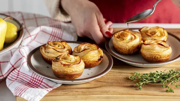 Step3Bake about 20 minutes or until pastry is puffed and browned. Spread 1 tablespoon preserves over top of each warm tartlet to cover pears. Cool on cookie sheet 10 minutes before serving.