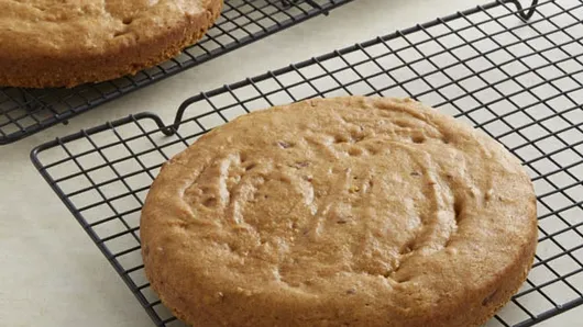 Step3Bake 19 to 24 minutes or until toothpick inserted in center comes out clean. Cool 10 minutes; remove from pans to cooling racks. Cool completely, about 1 hour.