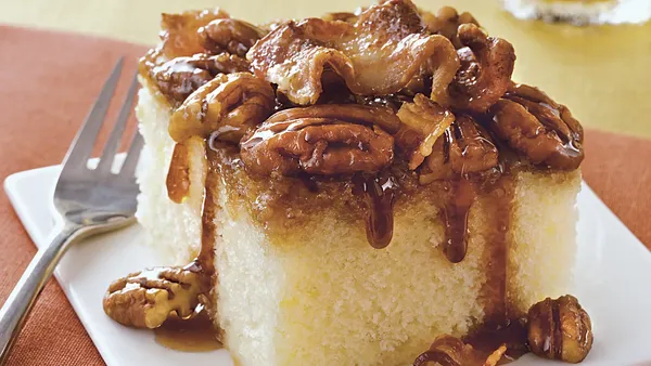 Bake this delicious upside-down cake made using Betty Crocker™ Super Moist™ yellow cake mix – a wonderful nutty dessert.