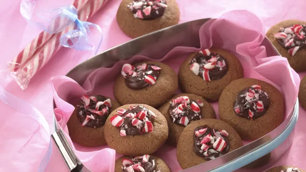 Step3Bake 12 to 15 minutes or until set but not brown. Immediately remove from cookie sheet; roll in reserved candy mixture. Cool completely on wire rack. Roll in candy mixture again.