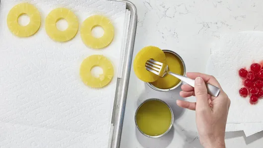 Pineapple rings: We found canned pineapple rings to the be the best option for this recipe because they are consistent in texture, moisture and sweetness.