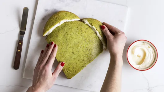 Step2In a large mixing bowl, beat cake mix, pistachios, water, vegetable oil, sour cream, and egg whites with an electric mixer on medium speed until combined. Divide the batter evenly between pans.
