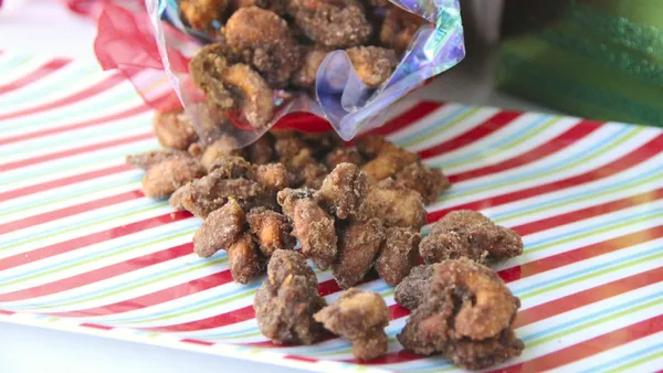 Coated with pizza seasoning and ground red pepper, spicy peanuts pair well with a thirst-quenching beverage.