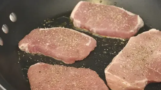 Step1In large skillet, heat oil over medium heat. Generously sprinkle both sides of pork chops with salt and pepper; add to skillet. Cook 8 to 10 minutes, turning once, until meat thermometer inserted in center reads 145°F. Remove pork chops to plate; cover to keep warm.