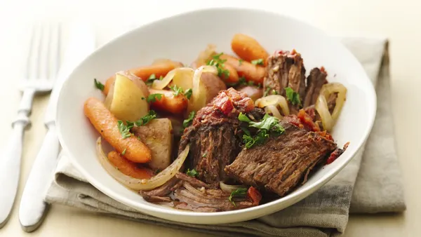 - 1 package (15 oz) refrigerated, fully cooked beef pot roast (about 1 1/2 cups)