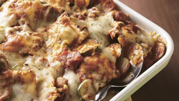 Layer frozen ravioli with veggies, sauce and the works for a hearty baked Italian-style casserole.
