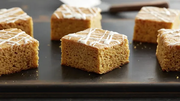 Step4In medium bowl, beat cream cheese, butter, milk and vanilla with electric mixer on low speed until smooth. Gradually beat in powdered sugar on low speed until smooth. Spread over bars. For bars, cut into 8 rows by 6 rows. Store covered in refrigerator.